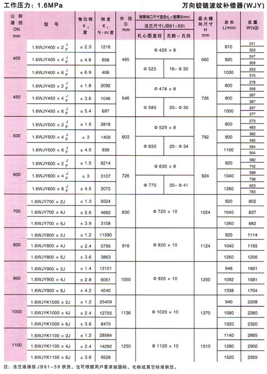 萬向鉸鏈波紋補償器(WJY)參數(shù)7