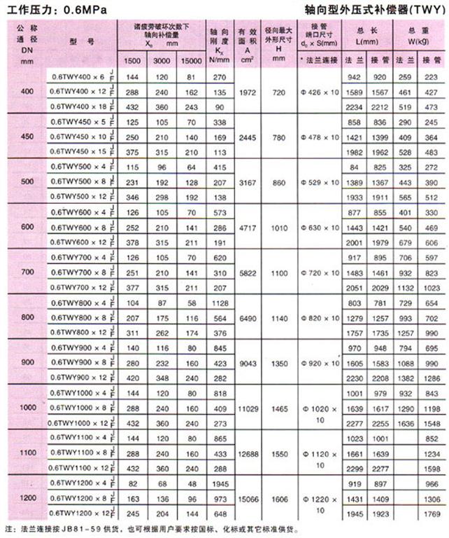 軸向型外壓式波紋補(bǔ)償器(TWY)參數(shù)2