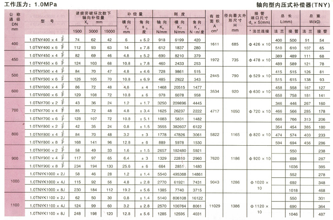 軸向型內(nèi)壓式波紋補(bǔ)償器(TNY)參數(shù)10