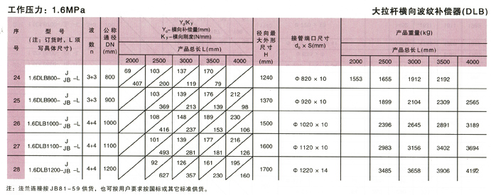 大拉桿橫向波紋補償器(DLB)參數(shù)6