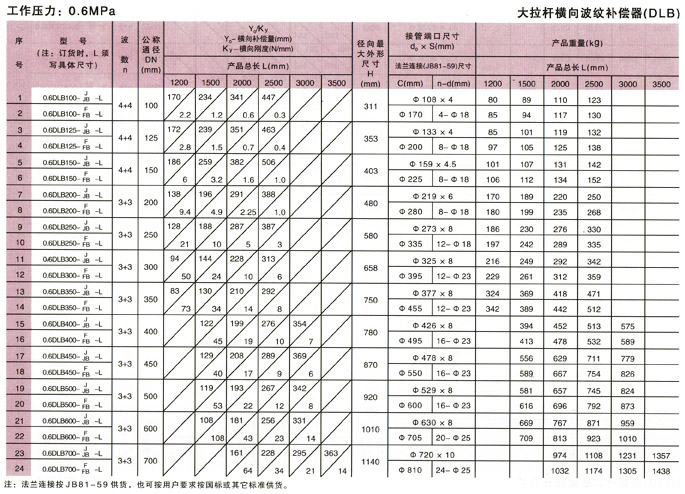 大拉桿橫向波紋補償器(DLB)參數1