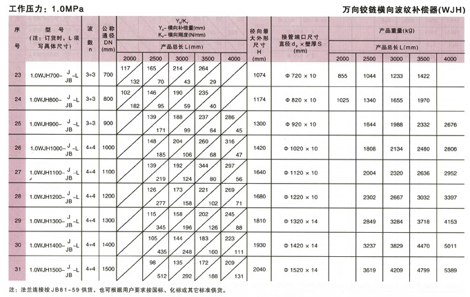 萬向鉸鏈橫向波紋補償器(WJH)產品參數4