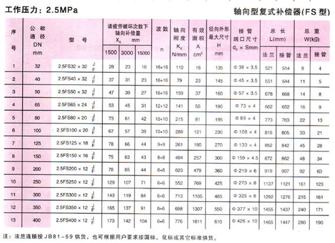 軸向型復(fù)式波紋補(bǔ)償器(FS型)參數(shù)2